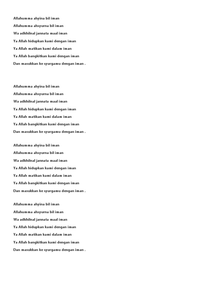 Lirik Lagu Indonesia. Allahumma ahyina bil iman Allahumma amitsna bil iman Allahummah syurna bil iman Wa adkhilnal jannata maal iman Ya Allah hidupkan kami dengan iman Ya Allah matikan dalam iman Ya Allah bangkitkan kami dengan iman Dan masukan ke syurgaMu dengan iman Terkadang selalu leka dan alpa Itu lumrah manusia Segeralah mohon taubat padaNya. Play over 265 million tracks for free on SoundCloud.